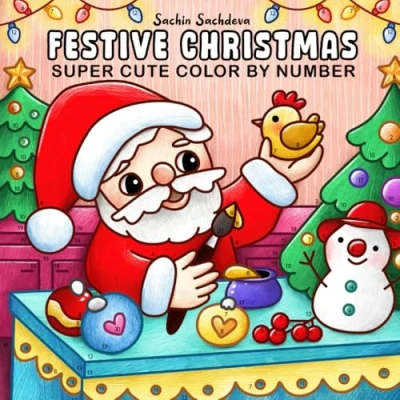 Festive Christmas Color by Number: Super Cute Coloring Book for Adults, Women, Teens and Kids, featuring Simple, Bold Easy designs relaxation