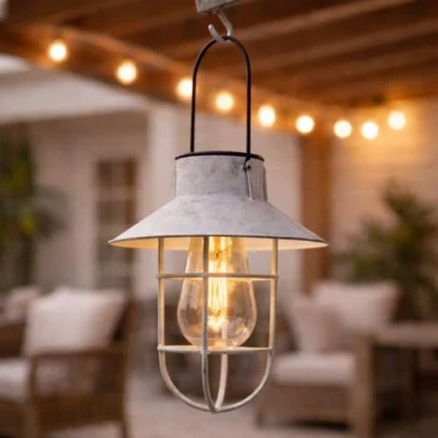 ☀️ STYLISH FISHERMAN-INSPIRED SOLAR LANTERN: Add nautical charm to your outdoor space with this 21cm hanging lantern, available as a single lantern or a pack of 2. Finished in an antique grey brush effect, it replicates weathered metal while being made from lightweight, durable plastic, ideal for patios, pergolas and garden pathways. 🔘 WARM WHITE FILAMENT EFFECT LEDS: Featuring two warm white LEDs, each lantern creates a cosy, ambient illumination that enhances any outdoor setting. The filament effect bulbs mimic the glow of traditional lanterns, making them ideal for evening gatherings or relaxing in the garden. ☀️ SOLAR POWERED & WIRE-FREE DESIGN: The integrated solar panel effortlessly charges throughout the day, ensuring automatic illumination at dusk. With no cables or mains power required, this eco-friendly lantern is easy to place anywhere - simply hang it from trees, fences, or pergolas for instant charm. 🔘 DURABLE & WEATHER-RESISTANT BUILD: Crafted for outdoor use, this IP44-rated lantern withstands various weather conditions, providing reliable lighting all year round. Measuring 21cm (H) x 17cm (D) x 17cm (W), it is compact yet impactful, making it a stunning feature for any garden. ☀️ 12 MONTHS COVER FOR PEACE OF MIND: Designed for longevity and lasting beauty, this solar-powered lantern comes with 12 months of cover. Whether used as a standalone feature or paired with other decorative lighting, it offers an elegant and hassle-free solution for illuminating your outdoor space.