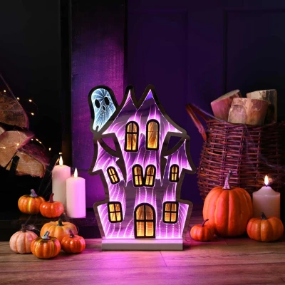 Festive Productions Halloween Infinity Effect 3D Pink House LED Light 40cm Decoration Haunted Themed Décor Prop Scary Perfect for Parties, Home, Living Room
