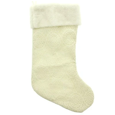Elegant white stocking with white trim Ideal to fill with small presents and diverse treats To put under your tree or at the base of your children's beds Easy hanging due to loop 50cm tall Elegant white stocking with white trim Ideal to fill with small presents and diverse treats To put under your tree or at the base of your children's beds Easy hanging due to loop 50cm tall