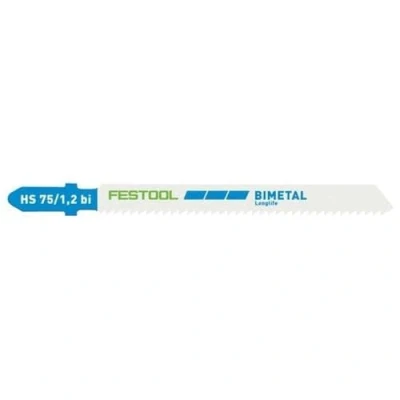 General description Festool 204270 Jigsaw Blades are designed for precision cutting in metal, including aluminium and non-ferrous metals. Made from high-quality HCS bimetal, these blades offer exceptional durability and a long service life, making them ideal for both professional and DIY applications. Technical specifications Material: HCS bimetal Length of cutting blade: 75 mm Pitch: 1.2 mm Max workpiece thickness: 20 mm Compatibility and accessories Compatible with Festool jigsaws: PS 300, PSB 300, PS 400, PSC 400, PSBC 400, PSB 400, PS 420, PSB 420, PSC 420, PSBC 420 Installation Easy saw blade replacement with T-shaft adapter Usage Ideal for processing aluminium, non-ferrous metals, and steel