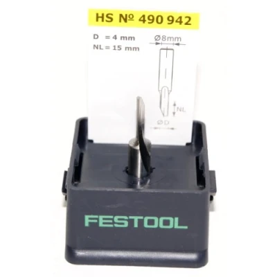 High speed steel groove slot cutter It has single-edged bit Features 15 mm cut length and 48.5 mm overall length Measures 8 mm shank diameter and 4 mm cutting diameter, Weight: 0.110231131 pounds, Manufacturer: Festool