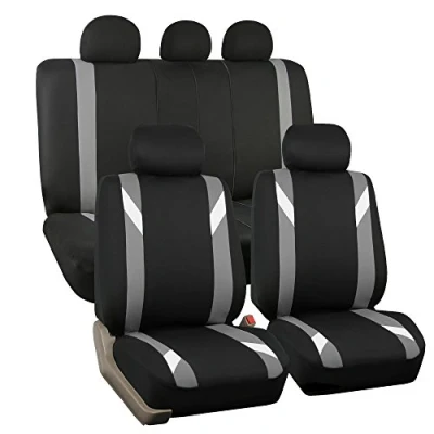 FH GROUP Car Seat Covers Full Set Cloth for Low Back Seats with Removable Headrest, Universal Fit, Automotive Cover, Airbag Compatible Cover SUV, Sedan, Van Gray