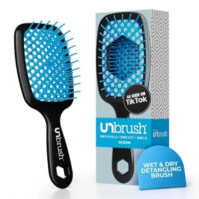Effortless & Painless Detangling: UNbrush hairbrush with its DuoFlex Anti-Static Bristles feature reduces breakage while gently releasing tangles, perfect for curly, thick, or fine hair types. Ultra-Light & Easy to Use: With a weight of only 1.5 oz, the light, high-performance handle on this detangling brush ensures durable flexibility and comfortable styling. Versatile on Wet & Dry Hair: Ideal for women, men, and children with all hair types, from fine and straight to thick and curly, this bristle hair brush works great on both wet or dry hair. Reduces Styling Time: The unique backless vented cushion design speeds up drying time and makes maintenance of the UNbrush bristle brush a breeze so you can use it anytime, anywhere. Durable, Long-Lasting Design: Constructed with high-quality materials, our soft bristle hair brush is built to last, providing long-term value that makes it a must-have staple.