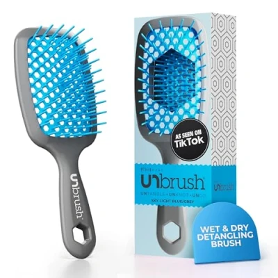 Effortless & Painless Detangling: UNbrush hairbrush with its DuoFlex Anti-Static Bristles feature reduces breakage while gently releasing tangles, perfect for curly, thick, or fine hair types. Ultra-Light & Easy to Use: With a weight of only 1.5 oz, the light, high-performance handle on this detangling brush ensures durable flexibility and comfortable styling. Versatile on Wet & Dry Hair: Ideal for women, men, and children with all hair types, from fine and straight to thick and curly, this bristle hair brush works great on both wet or dry hair. Reduces Styling Time: The unique backless vented cushion design speeds up drying time and makes maintenance of the UNbrush bristle brush a breeze so you can use it anytime, anywhere. Durable, Long-Lasting Design: Constructed with high-quality materials, our soft bristle hair brush is built to last, providing long-term value that makes it a must-have staple.