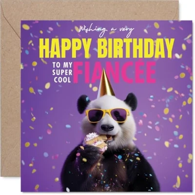 Fiancee Birthday Card Pandastic Cake Happy for from Fiance Partner, 145mm funny panda Bday Greeting Cards