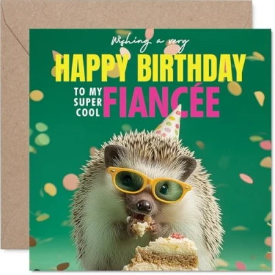 Fiancee Birthday Card Spike tacular Cake Happy for from Fiance Partner, 145mm funny hedgehog Bday Greeting Cards