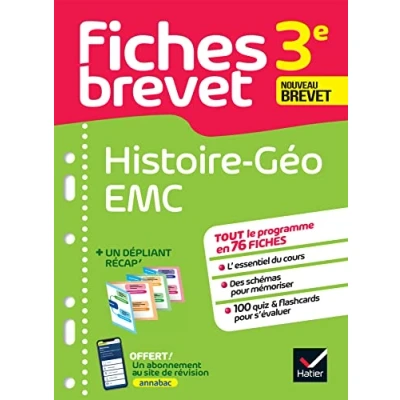 fiches Brevet Histoire Géographie EMC 3e 2025: tout le programme en de révision détachables