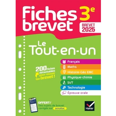 Fiches Brevet Le tout en un 2025 (toutes les matières): français, maths, histoire géo EMC, SVT, physique chimie, technologie