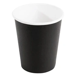 90(H) x 83(Ø)mm. Paperboard. Black. Black colour adds a modern and bold look to your services. Recyclable through specialist recycling streams; please check locally for available options. Suitable for temperatures up to 100°C.