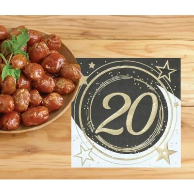 CELEBRATE YOUR BIRTHDAY IN STYLE! - Includes 20 napkins decorated with a vibrant 20th birthday design in black, gold, and white. Plates, cups, and other tableware not included. Perfect for adding a festive touch to your birthday party! DIMENSIONS - Bag of 20 napkins measuring 6.3x6.3 in, perfect for your summer parties. ENJOY YOUR SUMMER PARTIES WITH THESE PAPER NAPKINS - Perfect for any celebration, these black, gold, and white napkins will add a festive touch to your table. Bag of 20, each measuring 6.3x6.3 in. DECORATE YOUR SUMMER IN STYLE! - These disposable napkins are perfect for 20th birthday parties and summer celebrations. Available in black, gold, and white. Make every party unforgettable! COSTUMES AND ACCESSORIES FOR ALL OCCASIONS - At Fiestas Guirca, we have costumes, accessories, and decorations for Halloween, Carnival, Hen/Stag Parties, and more. Visit our Amazon store to explore further.