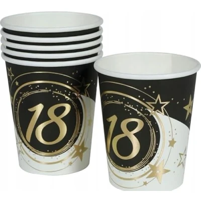 CELEBRATE YOUR BIRTHDAY IN STYLE! - Includes 6 decorative glasses of 8.5 oz in black, gold, and white. Drinks and additional decorations not included. Perfect for adding an elegant touch to your birthday parties! DIMENSIONS - Bag with 6 summer glasses, each with a capacity of 8.5 oz and 3.5 in height. ENJOY SUMMER WITH THIS FUN BAG OF 6 PAPER CUPS! Perfect for your parties and celebrations. Vibrant colours of black, gold, and white that will brighten up any event. BRING YOUR SUMMER PARTIES TO LIFE! - With this pack of 6 disposable glasses, 8.5 oz in black, gold, and white, your 18th birthday celebrations will be a hit. Perfect for enjoying and having a great time! COSTUMES AND ACCESSORIES FOR ALL OCCASIONS - At Fiestas Guirca, we have costumes, accessories, and decorations for Halloween, Carnival, Hen/Stag Parties, and more. Visit our Amazon store to explore further.