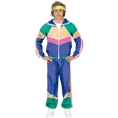 RETURN TO THE 80S! - Includes jacket and trousers. Does not include T-shirt, headband or trainers. Get ready to exercise with style and fun! Size 38 - 40. DIMENSIONS - Size 38-40 (M). Ideal for adults, with measurements that fit a range of 38 to 40. ADULT GYMNAST FANCY DRESS - Made from polyester. Perfect for sports events or gymnastics themes. Vibrant colours: blue and multicolour. Size: 38 - 40. ¡BECOME THE KING OF THE DANCE FLOOR! - Men's gymnast fancy dress, perfect for 80s parties and sports events. Having fun has never been so enjoyable! DISGUISES AND ACCESSORIES FOR ALL OCCASIONS - At Fiestas Guirca, we offer fancy dress, accessories, and decorations for Halloween, Carnival, Hen and Stag Parties, and more. Visit our Amazon store to see more.