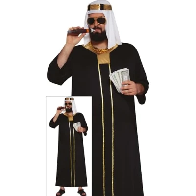 FIESTAS GUIRCA Arabic Sheik Mens Fancy Dress Costume Arabian Shaikh Men incl. Black Tunic and Headpiece Sheikh Size XXL