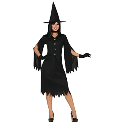 CONTENTS of this black salem witch Halloween costume adult women: Hat, T-Shirt, Skirt. NOT_INCLUDED: gloves, necklace COSTUME SIZE GUIDE: Ladies M 10-12 APPROXIMATE DIMENSIONS OF THIS FANCY DRESS: Bust 36.5-37.5" Waist 28.5-29.5" Hips 39-40" MATERIALS: This Halloween costume for adults is made of polyester and meets all safety standards so that you can have a great time at your next costume party. FIESTAS GUIRCA Halloween Costumes for Women: a great choice for your fancy dress or theme party, Manufacturer: FIESTAS GUIRCA
