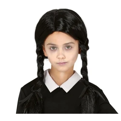 BLACK WIG WITH BRAIDS - Includes wig only. Does not include makeup, necklace, or clothing. Ideal for Halloween and themed parties. DIMENSIONS - One size fits all. Size suitable for all users. MATERIALS - Made with synthetic hair. Product colour: black. Contains fire retardant. GOTHIC WIG WITH BRAIDS - Ideal accessory for Halloween fancy dress. Complete your costume and enjoy the party! COSTUMES AND ACCESSORIES FOR ALL OCCASIONS - At Fiestas Guirca, we have themed wigs for every occasion. Visit our Amazon store to discover more products., Manufacturer: FIESTAS GUIRCA, S.L.