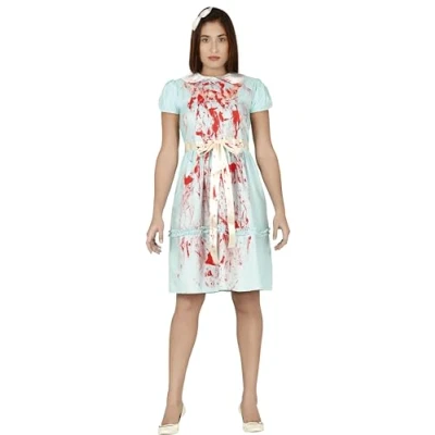 Box contents of this horror twin costume: dress. NOT INCLUDED: Accessories Size: horror film girl costume ladies 42-44 (L) Costume dimensions: approx. Bust 99.5 - 103 cm, Waist 80 - 84 cm, Hip 106 - 110 cm Material: this carnival or fancy dress costume for women impresses with a great design and is lovingly made from 100% polyester. So you can make an unforgettable appearance at your next costume party. FIESTAS GUIRCA: A great choice for fancy dress, carnival, Halloween or a horror movie themed party, Manufacturer: FIESTAS GUIRCA, S.L.