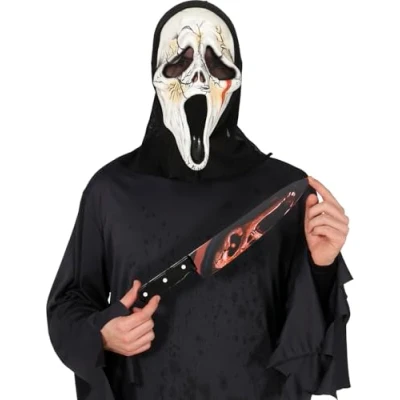 UNLEASH TERROR THIS HALLOWEEN! - Includes the 37 cm bloody killer knife. Mask and costume not included. Perfect for completing your chilling look! DIMENSIONS - 37 cm bloody killer knife, ideal for adding a terrifying touch to your fancy dress costumes. MATERIALS - Made of PVC, ideal for complementing your Halloween costume. Product colour: multicolour. SCARE AT EVERY PARTY! - 37 cm bloody killer knife, the perfect accessory for Halloween and horror parties. Having fun has never been so chilling! COSTUMES AND ACCESSORIES FOR ALL OCCASIONS - At Fiestas Guirca, we have costumes, accessories, and decorations for Halloween, Carnival, Hen/Stag Parties, and more. Visit our Amazon store to see more., Manufacturer: FIESTAS GUIRCA