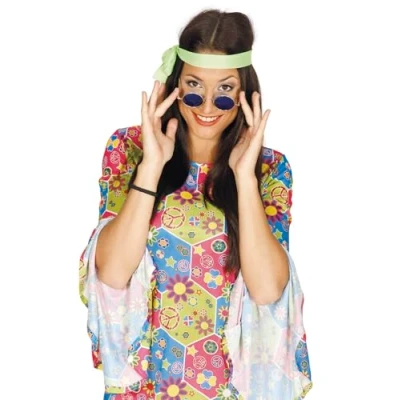 EMBRACE THE HIPPY SPIRIT! - Includes blue glasses. Wig and moustache not included. Perfect for completing your 60s look and shining at any party! DIMENSIONS - One size fits all. Suitable for all users. BLUE HIPPIE GLASSES FOR ADULTS - Made from metal and PVC. Perfect for completing your bohemian look at festivals or themed parties. Colour: blue. ADD A HIPPIE TOUCH TO YOUR PARTY! - Blue glasses perfect for adults, ideal for celebrating 1960s themed parties. Having fun has never been so enjoyable! COSTUMES AND ACCESSORIES FOR ALL OCCASIONS - At Fiestas Guirca, we have costumes, accessories, and decorations for Halloween, Carnival, Hen/Stag Parties, and more. Visit our Amazon store to explore further., Manufacturer: GUIRCA