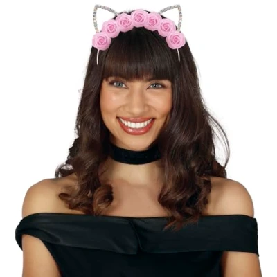 BECOME A CHARMING CAT! - Includes the headband with metallic flowers. Does not include makeup or other accessories. Perfect for adding a fun touch to your parties and celebrations! DIMENSIONS - One size fits all. Suitable for all users. CAT HEADBAND WITH METALLIC FLOWERS - Perfect for adding a fun touch to your look. Made from metal and polyester, it combines silver and pink colours for a charming style. CAT HEADBAND WITH METALLIC FLOWERS FOR UNFORGETTABLE PARTIES! - This fun accessory is perfect for adding an animal touch to your celebrations. Having a great time has never been so stylish! COSTUMES AND ACCESSORIES FOR ALL OCCASIONS - At Fiestas Guirca, we offer costumes, accessories, and decorations for Halloween, Carnival, Hen/Stag Parties, and more. Visit our Amazon store to explore our full range., Manufacturer: GUIRCA