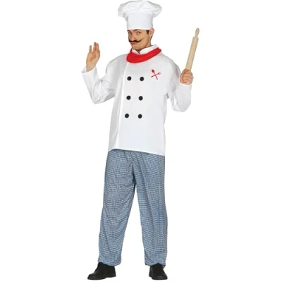 FIESTAS GUIRCA Chef's Costume for Adults Kitchen Cooking Chef Dress Up Men Carnival Role Play Fancy Word Book Day Large Size 40 42