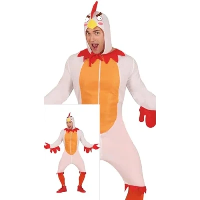 CONTENTS of this chicken mens fancy dress costume: hood, jumpsuit COSTUME SIZE GUIDE: Men 42-44 (L) APPROXIMATE DIMENSIONS OF THIS FANCY DRESS: Chest 40-42 inches, Waist 36-37 inches, Hips 42-44 inches MATERIALS: These fancy dress costumes for men are made of 100% polyester and meet all safety standards so that you can have a great time at your next costume party. FIESTAS GUIRCA adult fancy dress costumes men: a great choice for your fancy dress or theme party, Manufacturer: FIESTAS GUIRCA