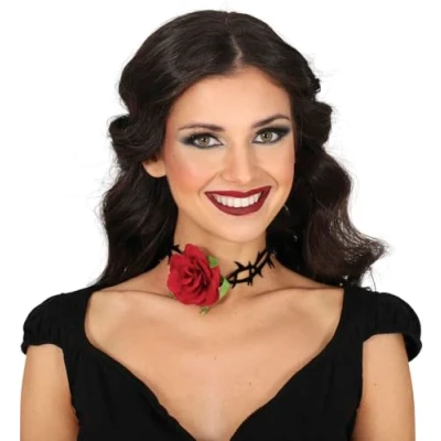 ADD A GOTHIC TOUCH TO YOUR LOOK! - Includes the rose choker with spikes. Does not include the red flower or other accessories. Perfect for standing out at Halloween and other parties! DIMENSIONS - One size fits all. Size suitable for all users. MATERIALS - Polyester choker with spikes. Perfect for adding a daring touch to your look. Available colours: red and black. ADD A TERRIFYING TOUCH TO YOUR LOOK! - Pink choker with spikes, perfect for Halloween and themed parties. Be the queen of fear and fun! COSTUMES AND ACCESSORIES FOR ALL OCCASIONS - At Fiestas Guirca, we have costumes, accessories, and decorations for Halloween, Carnival, Hen/Stag Parties, and more. Visit our Amazon store to see more., Manufacturer: GUIRCA