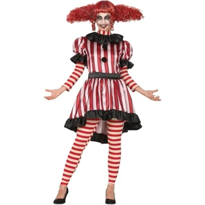 BECOME THE QUEEN OF TERROR! - Includes collar, trousers, and dress. Wig, makeup, and shoes not included. Get ready to scare and entertain this Halloween! DIMENSIONS - Size 8-10 (S). Perfect for a comfortable and fun fit. CLOWN FANCY DRESS 8 - 10 - Adult clown fancy dress, made from polyester and satin. Perfect for themed parties and carnivals. Steam ironable. Colours: black and red. BECOME THE QUEEN OF TERROR! - Women's clown fancy dress, perfect for Halloween and themed parties. Fun and laughter guaranteed! FANCY DRESS AND ACCESSORIES FOR ALL OCCASIONS - At Fiestas Guirca, we offer fancy dress, accessories, and decorations for Halloween, Carnival, Hen and Stag Parties, and more. Visit our Amazon store to see more., Manufacturer: Fiestas Guirca