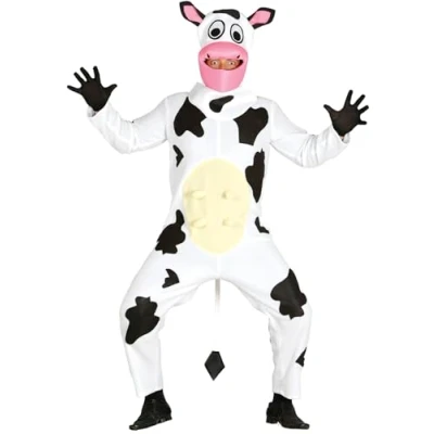 Cow Costume Contents: Hood, Jumpsuit With Tail Approximate Outfit Dimensions: Chest 96 - 101 Cm, Waist 96 - 90 Cm, Hips 99 - 100 Cm Costume Size Guide: Mens Medium This Adult Man Outfit Is Made Of Polyester And Conforms To Safety Standards Fiestas Guirca: A Great Choice For Your Animals Themed Fancy Dress Party, Manufacturer: Guirca