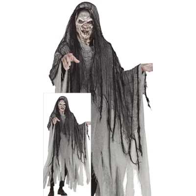 FIESTAS GUIRCA Cursed Ghost Men Fancy Dress Costume Killer Grim Reaper Tunic with Hood Mens Halloween Costumes Adult Size L