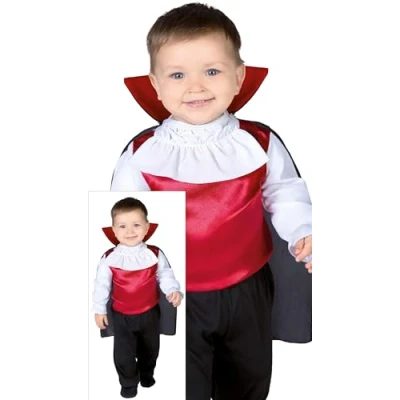 CONTENTS of this cute vampire baby fancy dress costume: cape, shirt, trousers COSTUME SIZE GUIDE: Halloween Costume Baby Boys 2-3 Years TODDLER COSTUME SUITABLE FOR HEIGHT: 37-38 Inches MATERIALS: Fiestas Guirca Halloween costumes for babies and toddlers are comfortable, easy to put on and take off, are made of 100% polyester, and meet all safety standards. FIESTAS GUIRCA: a great choice of baby Halloween costumes for your fancy dress party, Manufacturer: FIESTAS GUIRCA