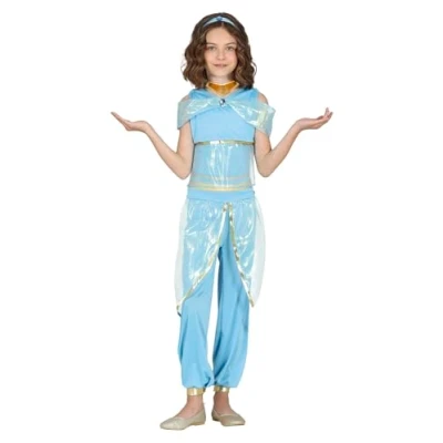 FIESTAS GUIRCA Desert Princess Fancy Dress Costume Girls Light Blue and Golden of Arabia Outfit for Children 10 12 Years