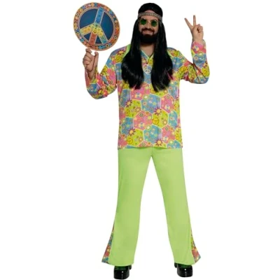 CONTENTS of this flower power hippie mens fancy dress costume: shirt, trousers. NOT_INCLUDED: further hippie accessories COSTUME SIZE GUIDE: Men 46-48 (XXL) APPROXIMATE DIMENSIONS OF THIS FANCY DRESS: Chest 47-48 inches, Waist 42.5-44 inches, Hips 49-50 inches MATERIALS: These fancy dress costumes for men are made of 100% polyester and meet all safety standards so that you can have a great time at your next costume party. FIESTAS GUIRCA adult fancy dress costumes men: a great choice for your fancy dress or theme party, Manufacturer: FIESTAS GUIRCA