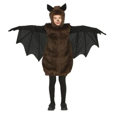 CONTENTS of Furry Bat Halloween costume: Tunic with hood and wing HALLOWEEN CHILD COSTUME SUITABLE FOR HEIGHT: 110-115 cm COSTUME SIZE GUIDE: Child 5-6 years MATERIALS: This fancy dress is made of polyester and conforms to all safety standards FIESTAS GUIRCA: a great choice for your fancy dress or Halloween party