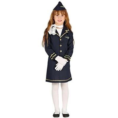 CONTENTS of this stewardess girls fancy dress costume: hat, dress. NOT_INCLUDED: tights, gloves, neck piece. COSTUME SIZE GUIDE: Carnival Costume Girls 10-12 Years KIDS COSTUME SUITABLE FOR HEIGHT: 56-58 Inches MATERIALS: This Carnival costume is made of 100% polyester and meets all safety standards, so that every girl can transform in a heartbeat into her favourite character. FIESTAS GUIRCA: a great choice of costumes for kids for your fancy dress party, Manufacturer: Guirca
