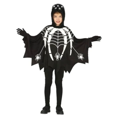 CONTENTS of Glow in the Dark Spider Halloween costume: Hood, poncho HALLOWEEN CHILD COSTUME SUITABLE FOR HEIGHT: 142-148 cm COSTUME SIZE GUIDE: Child 10-12 years MATERIALS: This fancy dress is made of polyester and conforms to all safety standards FIESTAS GUIRCA: a great choice for your fancy dress or Halloween party