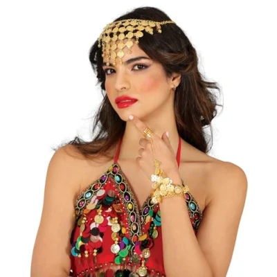 SHINE LIKE A GYPSY! - Includes the bracelet with gold medals. Does not include the ring or other accessories. Perfect for completing your desert princess look! DIMENSIONS - One size fits all. Suitable for all users. GOLD MEDALS BRACELET - Elegant gold-coloured medal bracelet made from metal. Perfect for complementing your fancy dress and shining at any party. Additionally, it features fire retardant for added safety. SHINE AT EVERY PARTY WITH THESE GOLD MEDALS! - Perfect jewellery bracelet to add an elegant touch to your prince and fortune teller fancy dress. Make every celebration unforgettable! COSTUMES AND ACCESSORIES FOR ALL OCCASIONS - At Fiestas Guirca, we have costumes, accessories, and decorations for Halloween, Carnival, Hen/Stag Parties, and more. Visit our Amazon store to explore further.