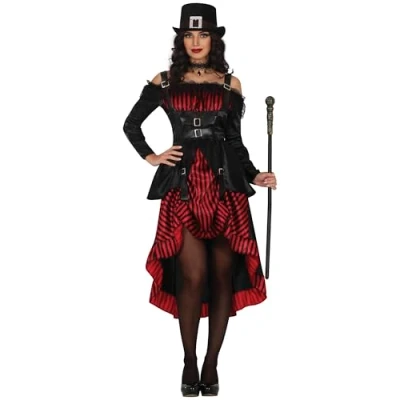 CONQUER THE GOTHIC WORLD! - Includes the stunning dress in size 14 - 16 (L). Does not include the hat, necklace, or cane. Perfect for shining at your Halloween and Steampunk parties in black or red! DIMENSIONS - Size 14-16 (L). Ideal for a streamlined figure, with a perfect fit to enhance your gothic look. GOTHIC WOMAN COSTUME FOR ADULTS - Made from polyester. Perfect for standing out at themed parties. Colours: black and red. Size: 14 - 16. TRANSFORM INTO A DAZZLING GOTHIC BEAUTY! - This gothic women's fancy dress is perfect for Halloween and Steampunk parties. Available in sizes 14 - 16 (L) and in black and red colours. Having fun has never been so elegant! COSTUMES AND ACCESSORIES FOR ALL OCCASIONS - At Fiestas Guirca, we have costumes, accessories, and decorations for Halloween, Carnival, Hen/Stag Parties, and more. Visit our Amazon store to explore further., Manufacturer: FIESTAS GUIRCA
