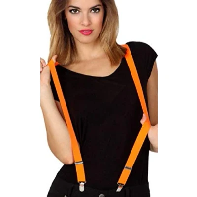 ADD A POP OF COLOUR TO YOUR LOOK! - Includes neon orange braces. Shirt and other accessories not included. Perfect for standing out at any party or celebration! DIMENSIONS - One size fits all. Suitable for all users. METAL AND POLYESTER BRACES IN VIBRANT NEON ORANGE - Perfect for adding a fun touch to any fancy dress or festive outfit. ADD COLOUR TO YOUR PARTIES! - These neon orange braces are the perfect accessory to stand out at any celebration. Having fun has never been so stylish! COSTUMES AND ACCESSORIES FOR ALL OCCASIONS - At Fiestas Guirca, we have costumes, accessories, and decorations for Halloween, Carnival, Hen/Stag Parties, and more. Visit our Amazon store to explore further., Manufacturer: Müller & Küssner GbR