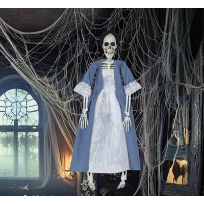 FIESTAS GUIRCA Hanging Skeleton with Dress (15.7 in) Halloween Decoration for Horror Parties and Celebrations Ideal Spooky Environments Scary Scenes Grey White
