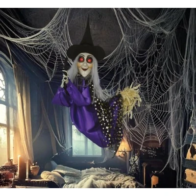 CATCH THE SPIRITS WITH THIS WITCH! - Includes the hanging witch with light and sound. Does not include the broom or other decorative items. Perfect for adding a spooky touch to your Halloween! DIMENSIONS - Hanging witch with light and sound, measures 29.5 in height. HANGING WITCH WITH LIGHT, SOUND AND MOVEMENT - Perfect for decorating your Halloween parties. Made from metal, polyester and PVC. Colour: black. Measures 29.5 in. TERRIFYING HALLOWEEN DECORATION! - Hanging witch with light, sound, and movement, perfect for adding a chilling touch to your parties. Having fun has never been so spooky! COSTUMES AND ACCESSORIES FOR ALL OCCASIONS - At Fiestas Guirca, we have costumes, accessories, and decorations for Halloween, Carnival, Hen/Stag Parties, and more. Visit our Amazon store to explore further., Manufacturer: FIESTAS GUIRCA, S.L.