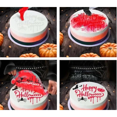 FIESTAS GUIRCA Happy Halloween Cake Decoration Stencil (25 cm) Table Mould for and Themed Parties Ideal Celebrations Events White