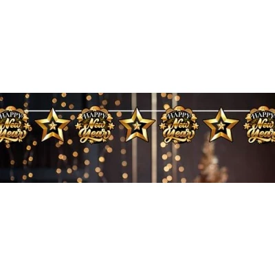 FIESTAS GUIRCA Happy New Year Garland Gold and Black (118.1 in) Party Decoration for Celebrations Ideal Year's Eve Parties Decorative Accessory