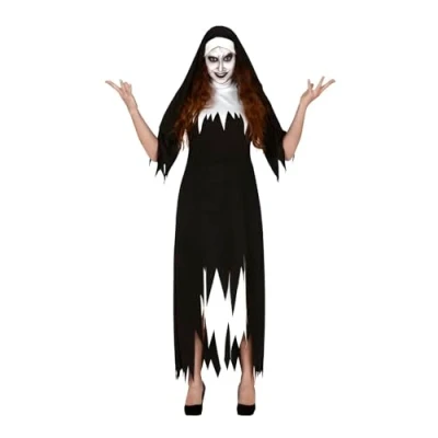 CONTENTS of this horror nun women fancy dress costume: headpiece, dress. NOT_INCLUDED: accessories COSTUME SIZE GUIDE: Women 18-20 (XL) APPROXIMATE DIMENSIONS OF THIS FANCY DRESS: Bust 42.5-45 inches, Waist 36-39 inches, Hips 43.5-49 inches MATERIALS: These Halloween fancy dress costumes are made of 100% polyester and meet all safety standards so that you can have a great time at your next costume party. FIESTAS GUIRCA fancy dress costumes for men and women: a great choice for your theme party or Halloween party, Manufacturer: FIESTAS GUIRCA