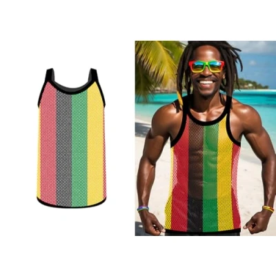 FIESTAS GUIRCA Jamaican Mesh T Shirt Multicolour (52 54/L) Fancy Dress Accessory for Adult Men Ideal Parties, Carnival and Themed Celebrations