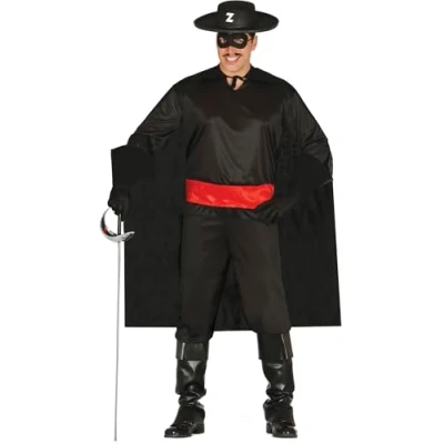 BECOME A HERO IN THE SHADOWS! - Includes mask, shirt, cape, sash, and trousers. Hat, sword, and boots not included. Get ready for adventure and fight against injustice! Available in black and red, size XXL (44 - 46). DIMENSIONS - Size 44-46 (XXL). Ideal for adults. BECOME THE HERO OF THE NIGHT - Transform into a vigilante with this Justice fancy dress. Made from polyester, it combines black and red for a striking look. Adult size XXL 44-46. BECOME AN ACTION HERO! - Justice fancy dress for adults (44 - 46 XXL), includes mask, shirt, cape, sash and trousers. Perfect for bandits and musketeers themed parties, and endless fun. FANCY DRESS AND ACCESSORIES FOR ALL OCCASIONS - At Fiestas Guirca, we offer fancy dress, accessories, and decorations for Halloween, Carnival, Hen and Stag Parties, and more. Visit our Amazon store to see more., Manufacturer: FIESTAS GUIRCA