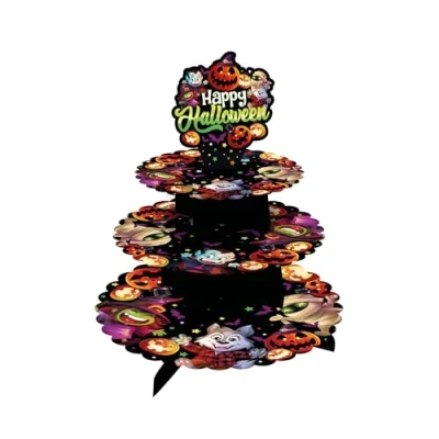 FIESTAS GUIRCA Little Monsters 3 Tier Cupcake Stand (15.7x11.8 in) Table Decoration for Spooktacular Halloween Parties Ideal Monster Celebrations Multicoloured