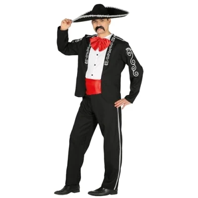 EXPERIENCE MEXICAN TRADITION! - Includes shirt, jacket, sash, and trousers. Hat and moustache not included. Get ready for the party with this authentic mariachi fancy dress! {DIMENSIONS - Size 42-44 (XL). Ideal for adults.} CELEBRATE IN STYLE AT YOUR MEXICAN PARTIES - This product is perfect for adding a festive and vibrant touch. Colours: black and red. Adult mariachi size XL 42-44. EXPERIENCE THE MEXICAN FIESTA IN STYLE! - Adult Mariachi fancy dress, includes shirt, jacket, sash, and trousers. Perfect for celebrating and having fun at any themed party. Size XL 42-44. FANCY DRESS AND ACCESSORIES FOR ALL OCCASIONS - At Fiestas Guirca, we offer fancy dress, accessories, and decorations for Halloween, Carnival, Hen and Stag parties, and more. Visit our Amazon store to see more., Manufacturer: FIESTAS GUIRCA