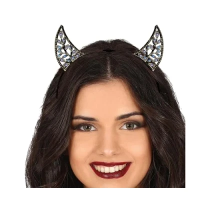 ADD A DEVILISH TOUCH TO YOUR LOOK! - Includes the black rhinestone horn headband. Other accessories not included. Perfect for your Halloween parties and themed celebrations! DIMENSIONS - One size fits all. Suitable for all users. METALLIC DEVIL HORNS HEADBAND - Metallic headband with horn design and rhinestones, perfect for adding a festive touch to your parties. Ideal for Halloween themes. Colour: black. ADD A TERRIFYING TOUCH TO YOUR FANCY DRESS! - Black rhinestone devil horns headband, perfect for Halloween and parties. Having fun has never been so enjoyable! COSTUMES AND ACCESSORIES FOR ALL OCCASIONS - At Fiestas Guirca, we have costumes, accessories, and decorations for Halloween, Carnival, Hen/Stag Parties, and more. Visit our Amazon store to explore further., Manufacturer: FIESTAS GUIRCA