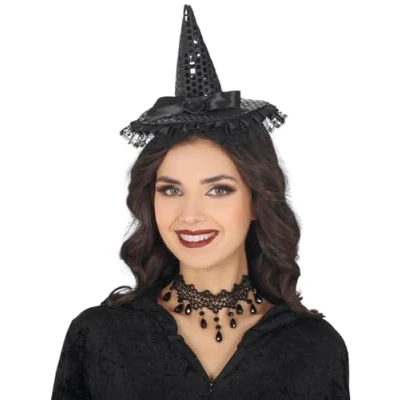 BECOME THE MOST ELEGANT WITCH! - Includes the mini hat with black sequins and headband. Does not include makeup or dress. Perfect for dazzling at Halloween and other themed parties! DIMENSIONS - One size fits all. Suitable for all users. MINI WITCH HAT WITH BLACK SEQUINS - Perfect for adding a magical touch to your Halloween parties. Made from polyester and PVC. Colour: black. ADD A MAGICAL TOUCH TO YOUR LOOK! - Mini witch hat with black sequins, perfect for Halloween and themed parties. Having fun has never been so stylish! COSTUMES AND ACCESSORIES FOR ALL OCCASIONS - At Fiestas Guirca, we have costumes, accessories, and decorations for Halloween, Carnival, Hen/Stag Parties, and more. Visit our Amazon store to explore more., Manufacturer: FIESTAS GUIRCA, S.L.